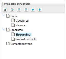 In de linkerkolom ziet u de website structuur, dit is een overzicht van de pagina's van de website. In de rechterkolom ziet u de inhoud van de geselecteerde pagina.
