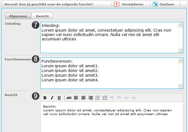 | 9) Bericht | hier vult u de tekst van de vacature in |