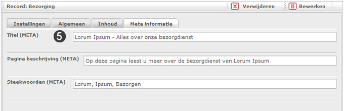 Deze meta informatie is wordt door zoekmachines gebruikt om uw pagina op te zoeken. Lees meer over het omgaan met zoekmachines.