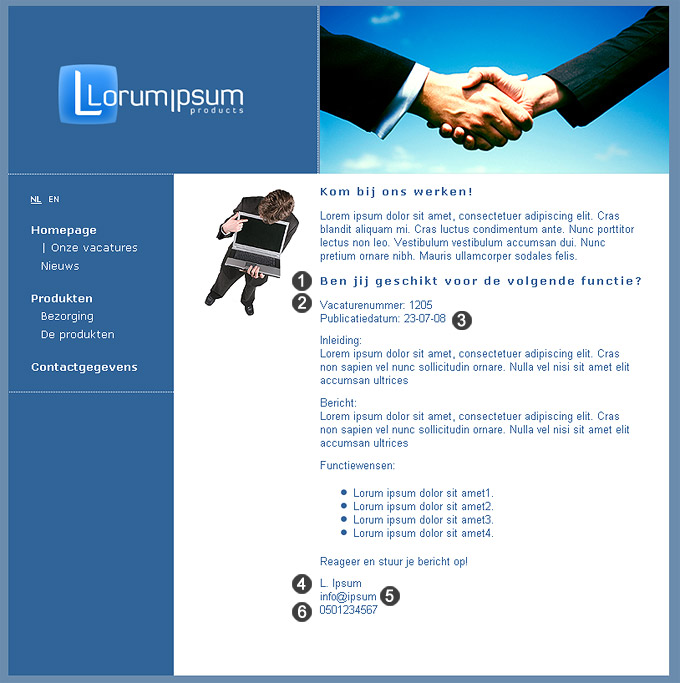 | 6) Telefoonnummer | Hier vult u het telefoonnummer om op de vacature te reageren in |